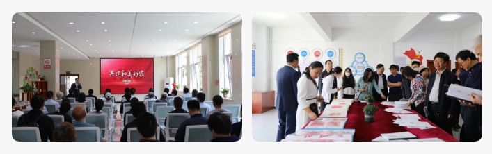 各位嘉宾现场听取了服务站有关情况介绍,观看了宣传片《和美致祥》《和美的家》。张建和周宁共同为民盟山东省社会服务实践基地揭牌。